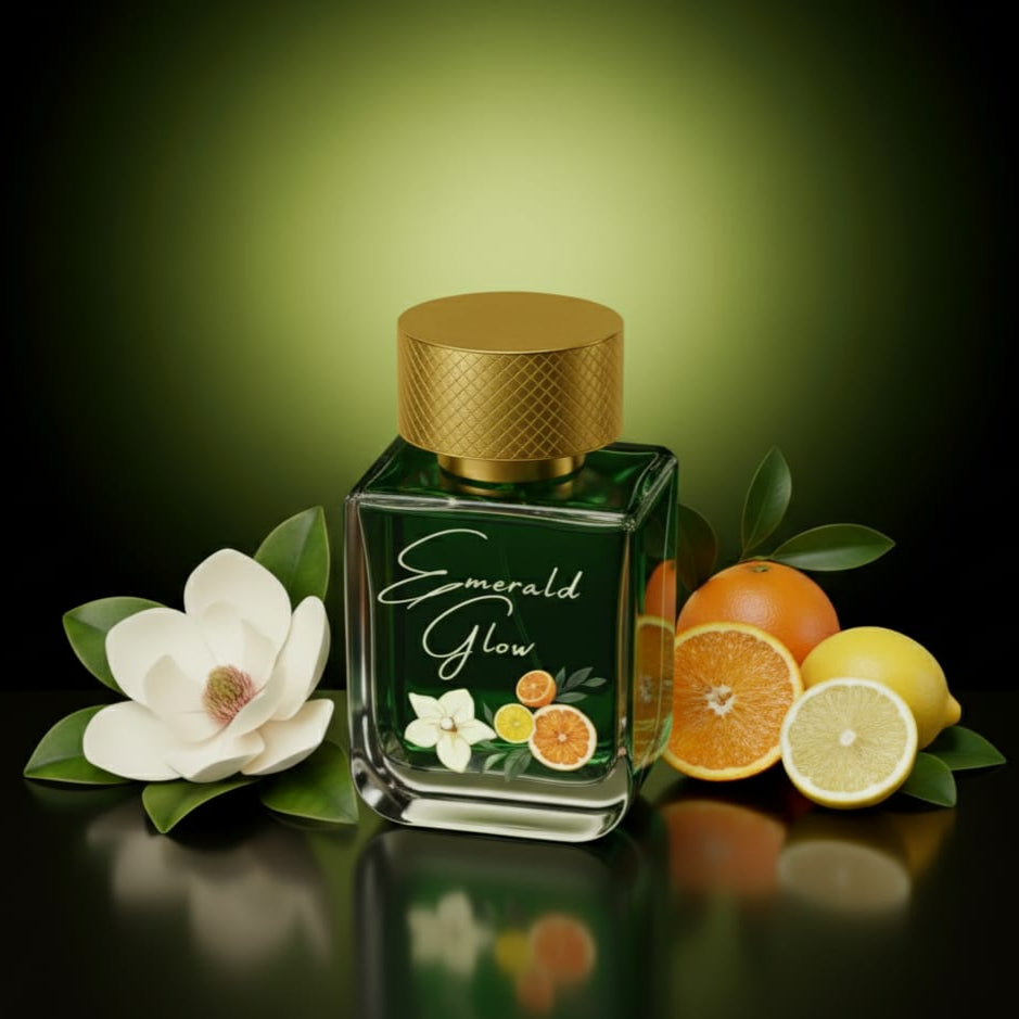 Emerlad Glow is a radiant burst of fruity elegance and musky warmth—an irresistible blend that captivates from the very first breath. Inspired by the exquisite Erba Pura, it opens with a vibrant medley of Mediterranean fruits, melting into a heart of soft florals, and resting on a luxurious base of vanilla, white musk, and amber.